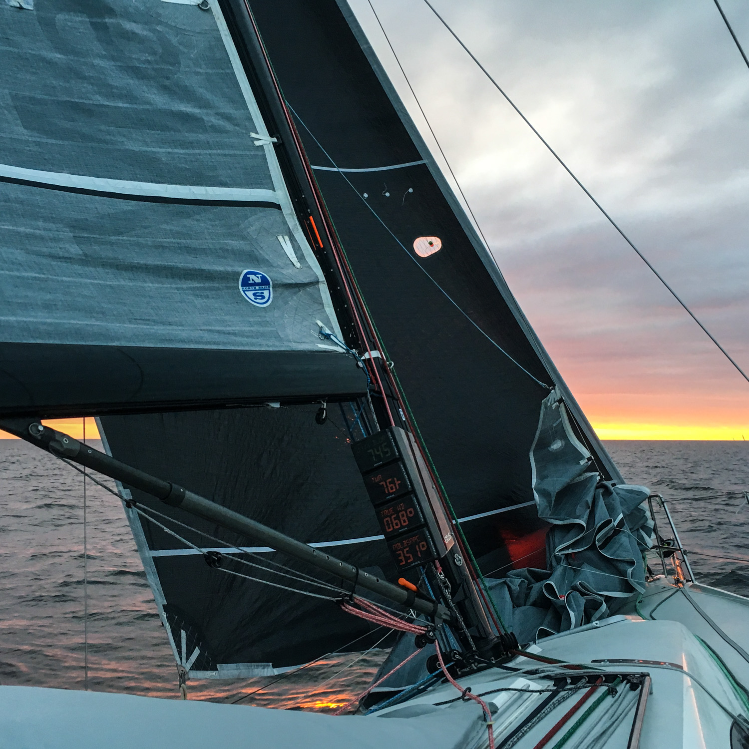 Efter bron hade vi fått till ett bra avstånd bakåt. Segelkvalet visade sig vara rätt och det visade sig att det även funkade när vi svängde söderut. Vi kanske hade 1 eller 2 rejäla broachar, men oftast lyckades vi falla 20-30 grader och omvandla byarna till fart. Det här gick bättre än väntat.