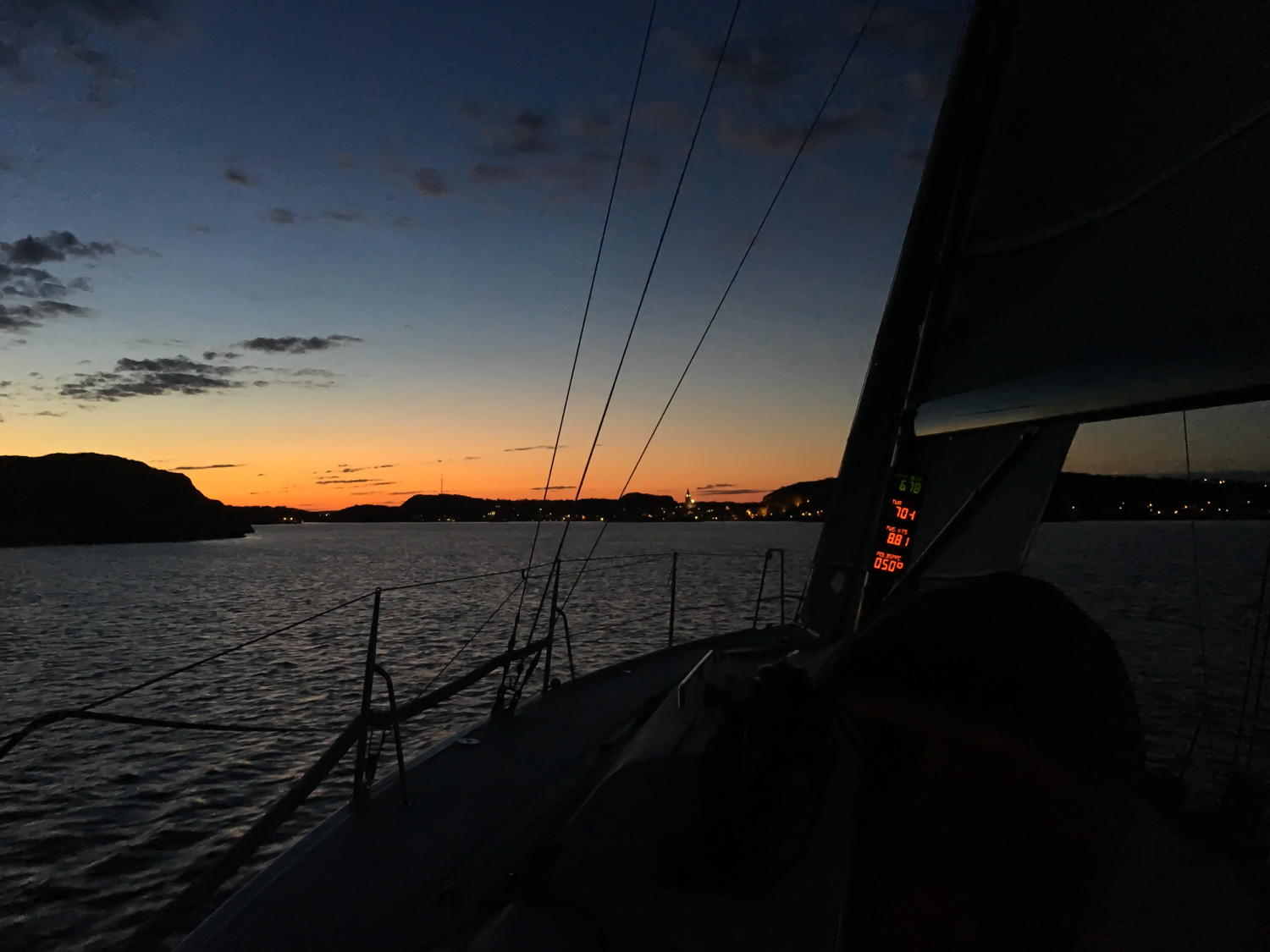 Även om det var frustrerande att inte kunna matcha Godevenner, så var seglingen fantastisk. Normalt brukar man ju vara i Fjällbacka på morgonen, men nu var vi där när det var som mörkast. Helt fantastiskt.