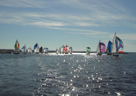Årets start. Starten på Sunneskärs tillfartssegling till Tjörn Runt. Helt osannolik start där vi efter 15 minuter har denna lucka till hela fältet!!! Bättre än så här blir det inte. Till höger Arcona och Ker 11.3 som var de enda båtar som till sist var före i mål.