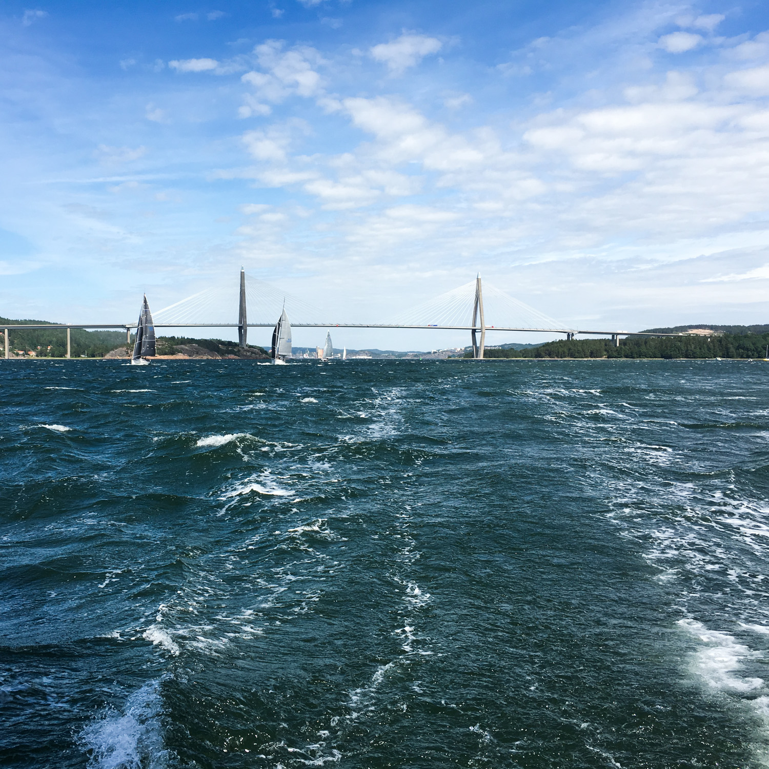 Innan Tjörnbroarna lättade det ur, och vi funderade länge på snabbaste vägen för att kunna sätta gennaker. Det blev till slut Tjörnbron och öster om Brattön, för att kunna köra upp A5 vid Vinterholmen.