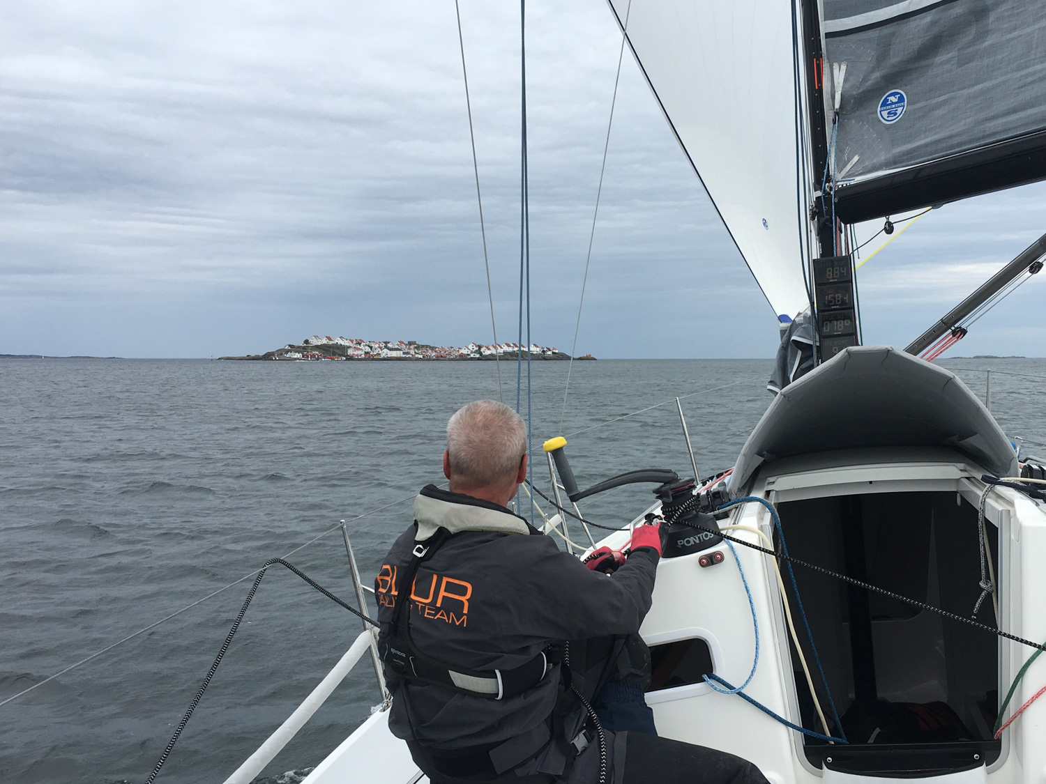 När man kom ut ur Uddevalla så låg alla båtar, inklusive startfartyget och tryckte på en liten plätt där det var lä bakom ett högt berg. På resten av fjorden stod det stadigt 12-15 m/s med rejäla byar…