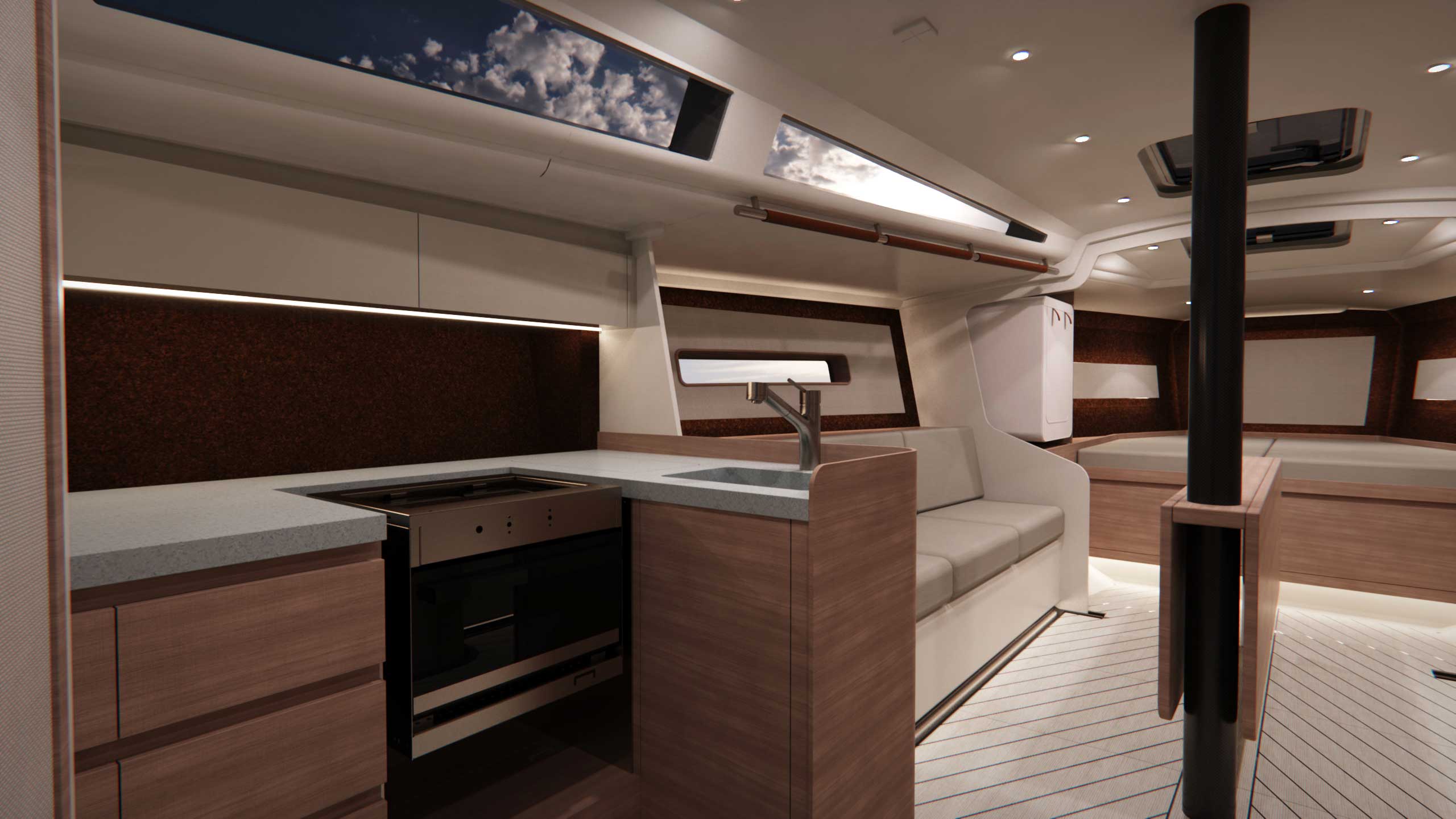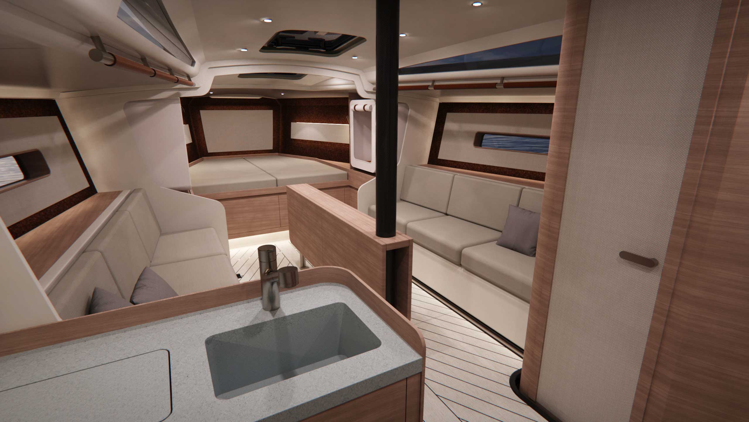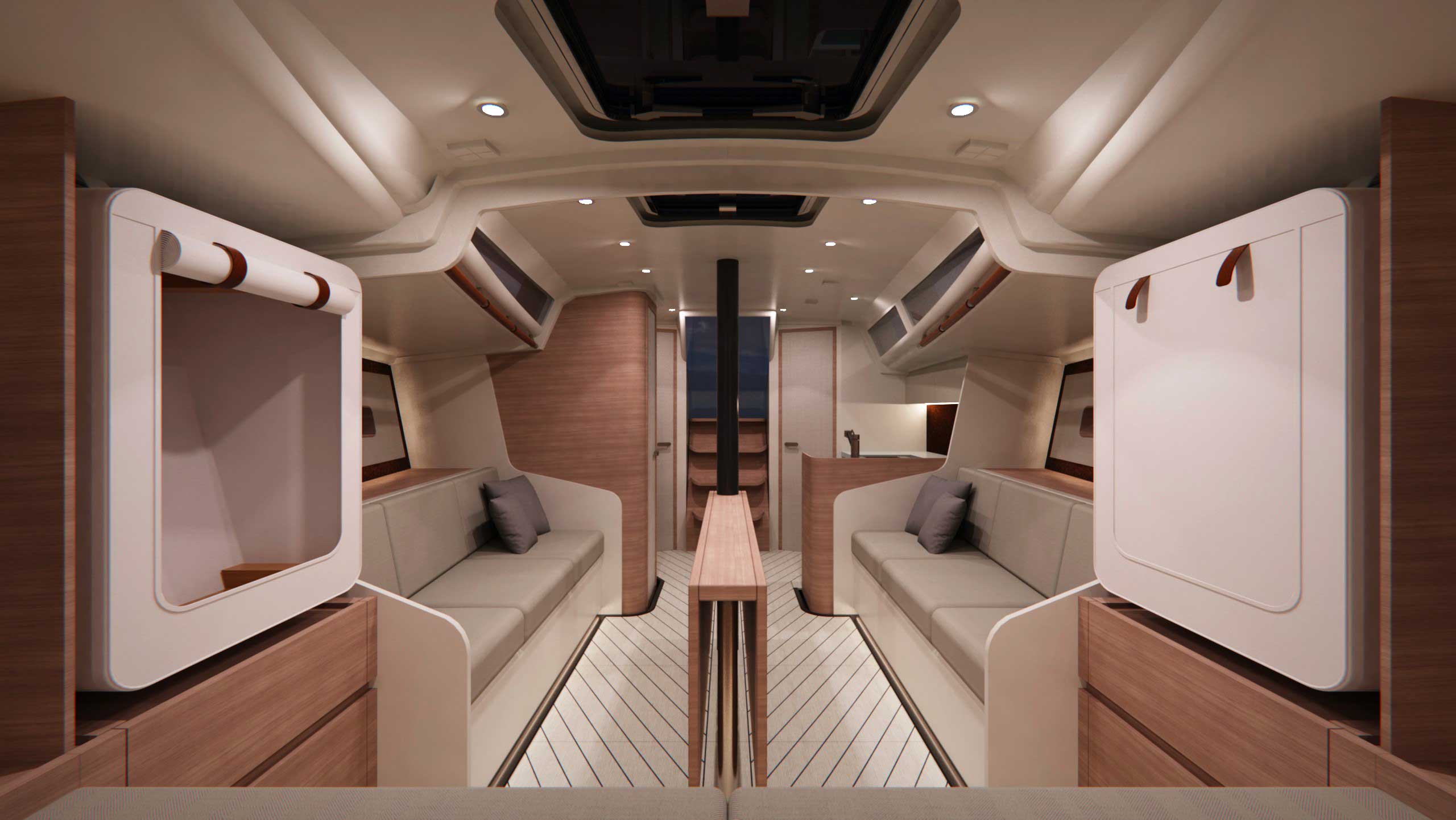 The interior design has been envisioned by studying the needs of Owners considering this model and combines practicality and comfort for both racing and cruising modes.