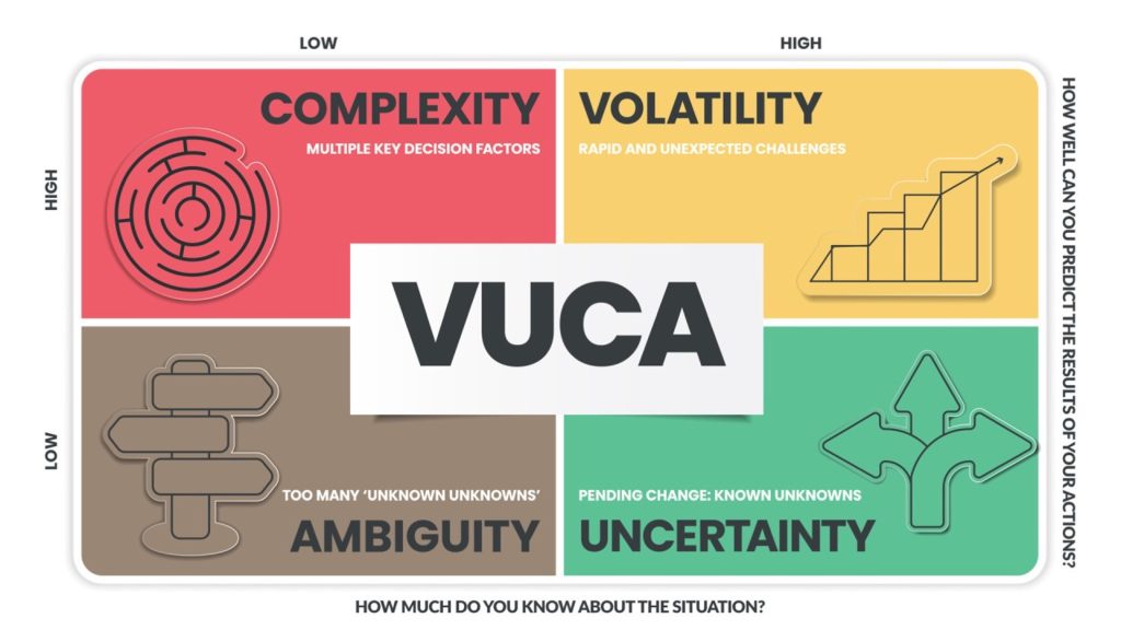 Det är viktigt att förstå att vi skall kommunicera och fatta beslut i en väldigt utmanande miljö, där det sällan finns något som är helt säkert. Detta brukar kallas VUCA, som beskriver sammanhang som är svåra att navigera i. Som startup-världen. Eller havskappsegling.