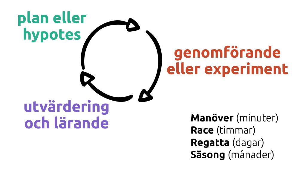 Vi har också gjort det till en grej att ta tid på olika manövrar och moment, och att experimentera ganska mycket. Skapar samsyn ombord och uppmuntrar lärande.