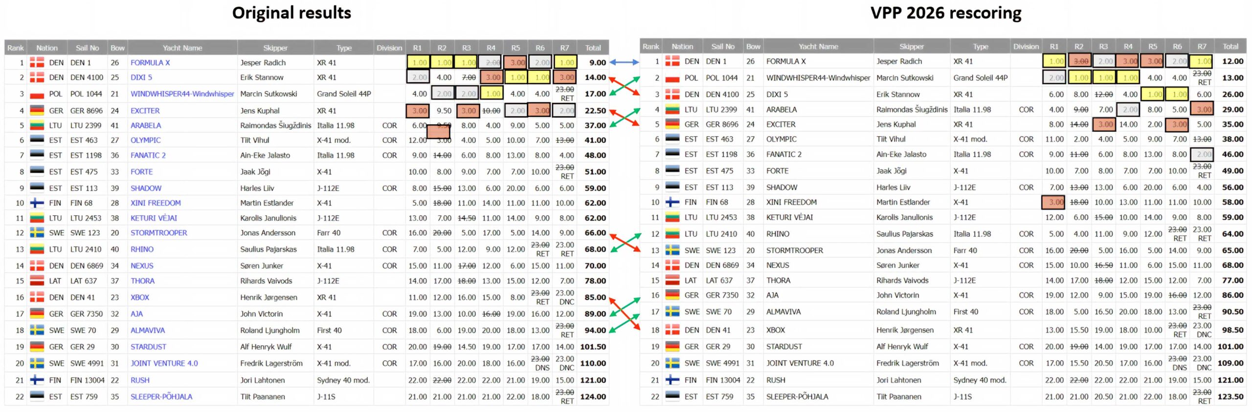 - Straffet: En XR-41 under 2026 måste segla ca 10 sekunder snabbare per mil för att få samma korrigerade tid.